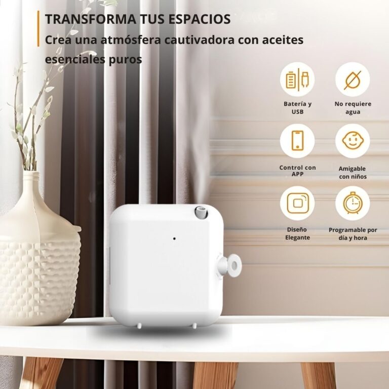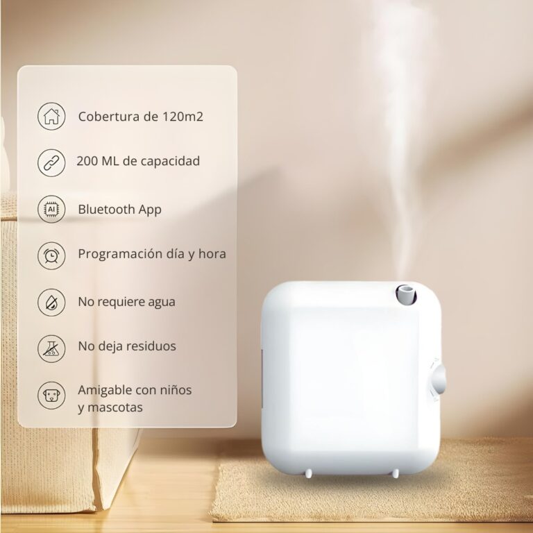 Equipo Smart Crea atmosferas relajantes y aromáticas para medianos espacios Cubre 60m2 App Control Amigable con niños y animales 200ml de capacidad QUIERO EL PRODUCTO QUIERO EL PRODUCTO